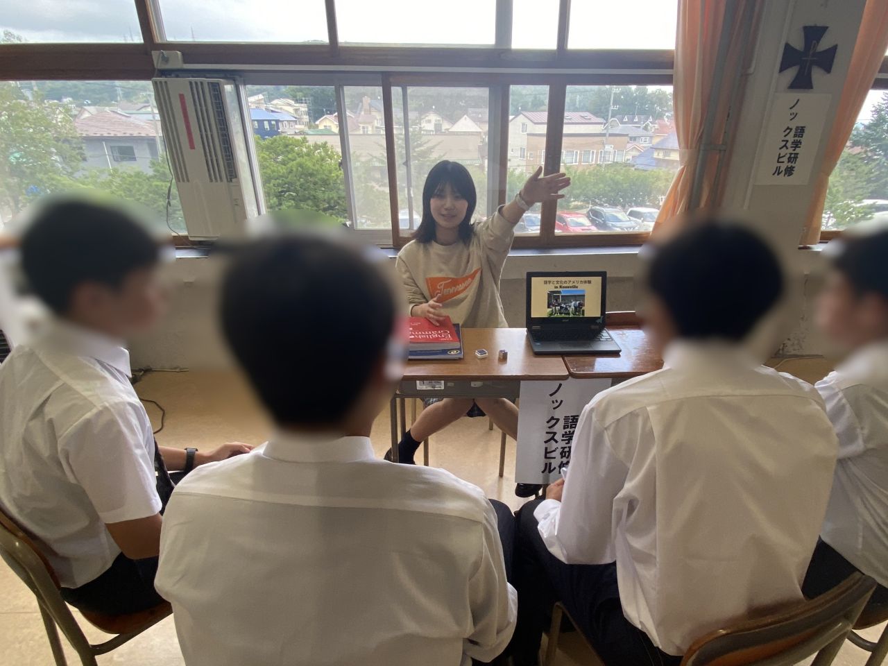 今回のオープンスクールでは、本校生徒が主体となって学校の魅力を紹介しました。英語をはじめとする授業や学校行事・学校生活、探究活動の取り組み、また留学経験者による体験談など、生徒自らがスライドを作成し、自分たちの言葉で発表しました。さらに、弓道部や文化系部活動の体験も行われ、参加者の皆さまに本校での学びや生活をより具体的に感じていただける機会となりました。