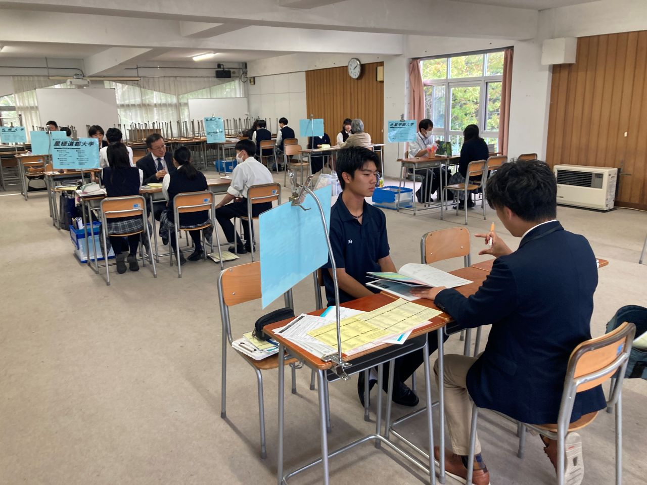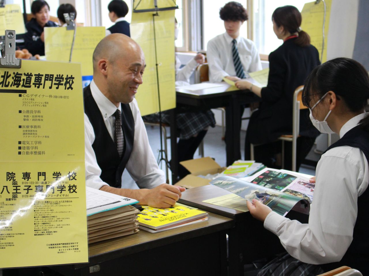 10月1日(水)に2年生対象の進路講演会と学校説明会が実施されました。大学と専門学校の先生によるトークセッションを通じて、生徒は大学と専門学校の違いについて理解を深めることができました。また就職を希望する生徒は、就職活動に関する講演会に参加し、社会人に求められる力や履歴書の作成について学びました。その後、それぞれの大学・専門学校のブースに分かれて、生徒は先生方と活発にコミュニケーションをとり、各校の特色を掴み、見聞と進路選択の幅を広げました。