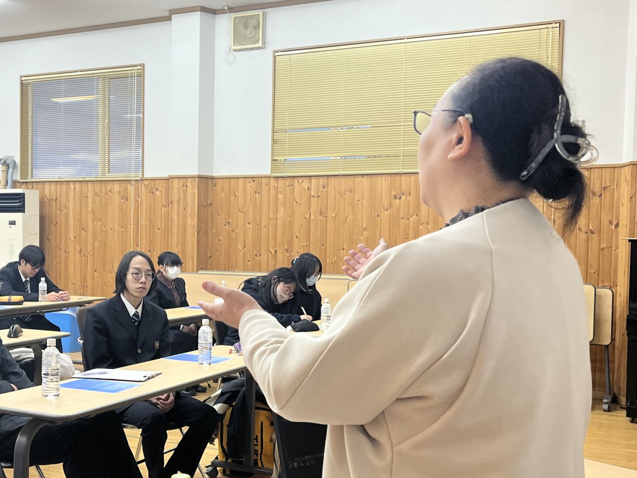 佐藤綾子氏が、「お菓子屋さんと世界・社会のつながり」というテーマで、ご自身の経験をお話してくださいました。講演を通じて、生徒は「自分で確かな情報を集める大切さ」、「人との出会いに感謝し、大切にすること」、「起きている出来事を、全て自分にとって必要なことと捉えてみる視点」、等について理解を深めることができました。