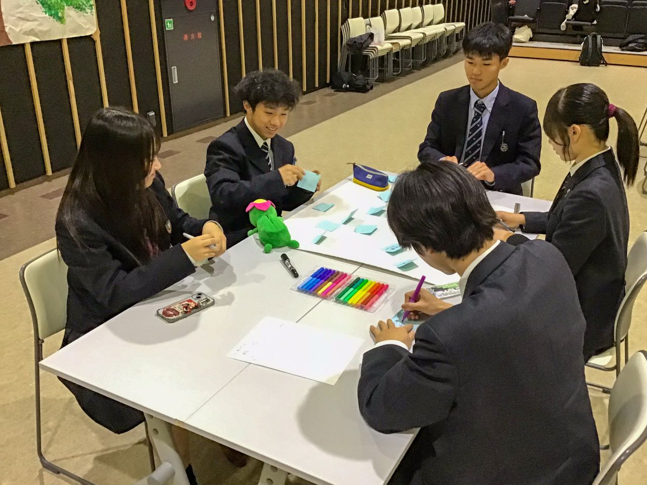 11月16日、室蘭ユネスコ協会主催の同ワークショップが北海道大谷室蘭高校で開催され、本校をはじめ北海道大谷室蘭高校と北海道登別明日中等教育学校の生徒が参加しました。このワークショップでは、生徒がグループに分かれて、各校で実施しているユネスコ活動や持続可能な社会を目指す取り組みについて紹介し合い、そのコマーシャルを作成しました。生徒は他校の生徒と活発に情報交換をしながらテーマをまとめ、それに基づいて劇やダンスを交えたコマーシャルを作り上げ、互いに鑑賞し合いました。これらの活動を通じて、生徒は互いの活動について理解を深めるとともに、コミュニケーションこそが相互の理解と友愛、信頼で世界を結ぶことを目指すユネスコの理念を実現するための一歩になると感じることができました。