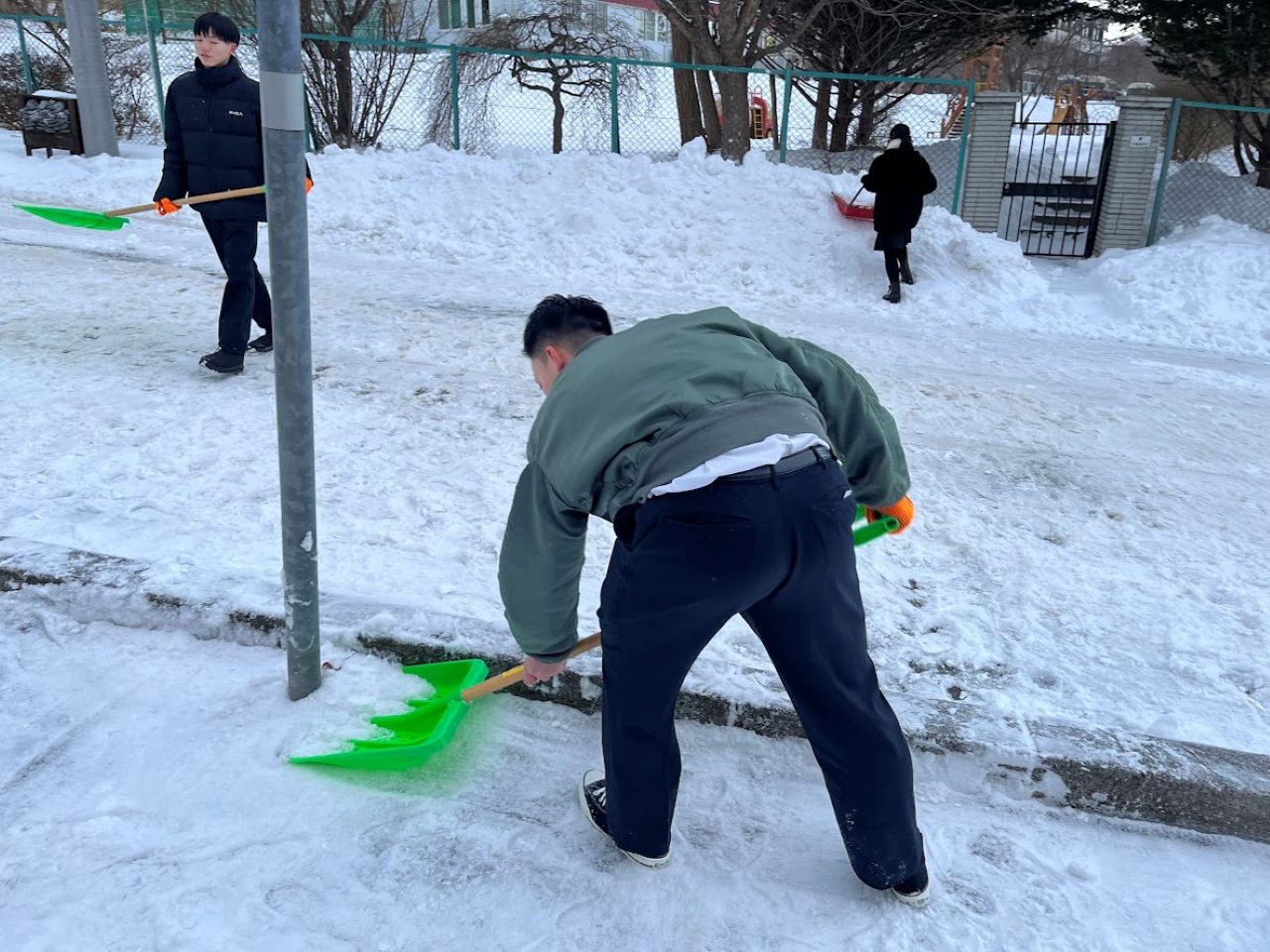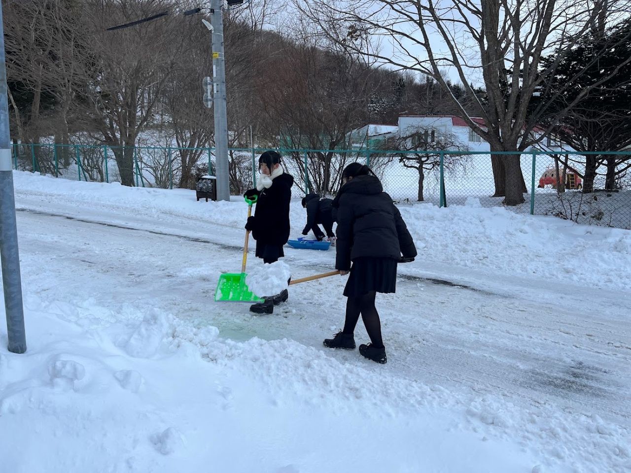 HOME > 海星ニュース > 2025年度 > 雪かきレンジャー出動 2025年度 海星ニュース 2026年1月26日 「雪かきレンジャー出動」(1月26日) 毎年,本校は室蘭社会福祉協議会主催の「雪かきレンジャー」に登録し,地域で雪かきボランティアを行っています。今年は1月26日に初出動しました。生徒達は雪かきを通して,普段から身の回りで除雪作業をしてくれている人がいるため日常生活を送れていることに気づき,自ら雪かきをすることで地域の安全が守られることを実感しました。生徒たちは地域の一員として、人々に奉仕する喜びや大切さについて学びながら、3月末まで雪かきが困難な方々の要請に応じて活動を続けます。