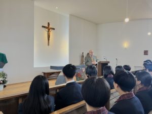 HOME > ANNUAL EVENTS SCHEDULE学校行事 主な学校行事‐前期‐ 4月~9月 入学式 【4月】 宿泊研修(1年生) 【4月】 対面式 【4月】 マリア祭 【5月】 姉妹大学付属PREPインターン受入 【6月】 姉妹校BSMインターン受入 【7月】 通訳・文化交流ボランティア 【5月】 学院祭 【7月】 キャリア探究(2年生) 【7月】 海星学院杯中学生英語弁論大会【9月】 OPEN SCHOOL 【9月】 生徒会役員会役員選挙 【9月】 主な学校行事‐後期‐ 10月~3月 体育大会 【10月】 カトリック東室蘭教会見学 【10月】 アメリカ修学旅行(2年生) 【10月】 国内修学旅行(2年生) 【10月】 追悼ミサ 【11月】 クリスマスミサ 【12月】 クリスマス祝賀会 【12月】 百人一首かるた大会 【2月】 卒業証書授与式 【3月】 関連 ☛2025年度年間行事予定PDFダウンロード 2021年1月5日 author